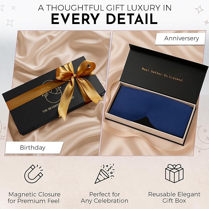 - Elegant Gift for Any Occasion – Each Mulberry Silk 3D sleep mask comes in an elegant gift box, making it a thoughtful choice for weddings, birthdays, and special moments. Available in Navy Blue & rose gold .