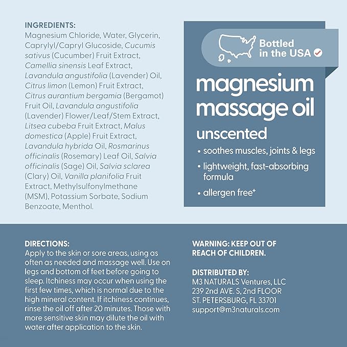 - Easy, Effective Topical Application: Delivering the benefits of magnesium directly through the skin, this topical magnesium massage oil is a simple way to support your wellness routine—anytime you need relief, recovery, or rest.