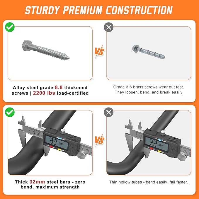 - 📦Durable Material: Made with 32mm thick steel tubing and premium powder coating for rust-proof durability.Supports up to 500lbs - ideal for weighted pull-ups & intense workouts