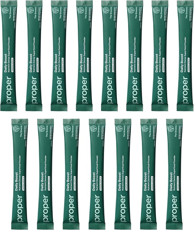 Proper, The Greens Daily Boost Organic Greens Powder. Whole Food, Apple Flavor Veggie Powder Superfood with Wheatgrass, Spirulina, Chlorella, Probiotics. Daily Drink Mix for Wellness and Digestion