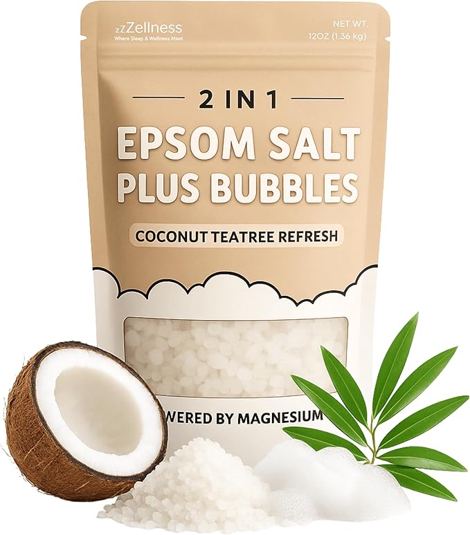 Epsom Salt Plus Bubbles – Coconut & Teatree Scented Foaming Bath Soak – Magnesium Sulfate for Muscle Recovery, Stress Relief & Relaxation – Great for Aromatherapy – 12 oz