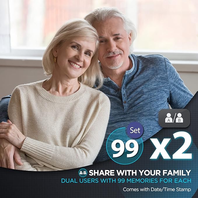 - Dual-User Mode with 99x2 Sets Memory - Share the monitor with your love! This arm blood pressure monitor cuff supports that 2 users have their own independent measurement records, each user can be recorded up to 99 measurements. One-push independent MEM button makes it hassle-free to check historical records for users in the family, easily track their health, blood pressure data according to the specific date and time.
