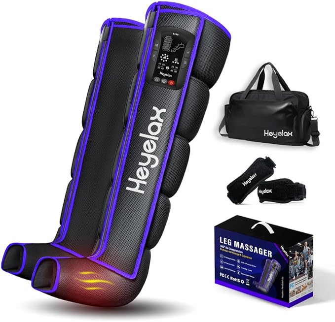 - [Medical-Grade Leg Massager] Heyelax, backed by a prestigious listed hospital group, offers a medical-grade air compression leg massager for improved blood circulation and faster recovery. The air compression boots are designed to relieve leg pain and muscle cramps, providing therapeutic relief for restless legs, swelling, and poor circulation.