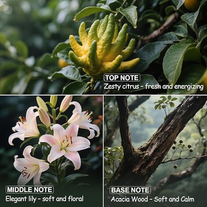 - 【“24K Magic” : Layered Floral‑Wood Harmony】An elegantly balanced heart of magnolia, jasmine and lily gently unfolds, giving way to a comforting base of koa wood and musk for a truly refined atmosphere. Only 2–3 drops release a bright blend of bergamot and lemongrass that fills up to 400 sq ft in minutes, instant refresh for large spaces—uplifting any room with a clean, energizing scent.