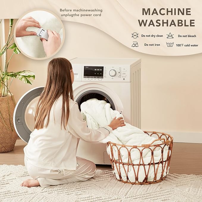 - 5-YEAR WARRANTY: If you encounter any quality problems within 5 years, you can contact us at any time. We have a 7x24-hour online customer service who can reply to your questions at any time. Heated blankets can be machine washed, but please read the instructions carefully before cleaning to avoid improper operation, which can avoid safety problems and prolong the service life of electric blankets.