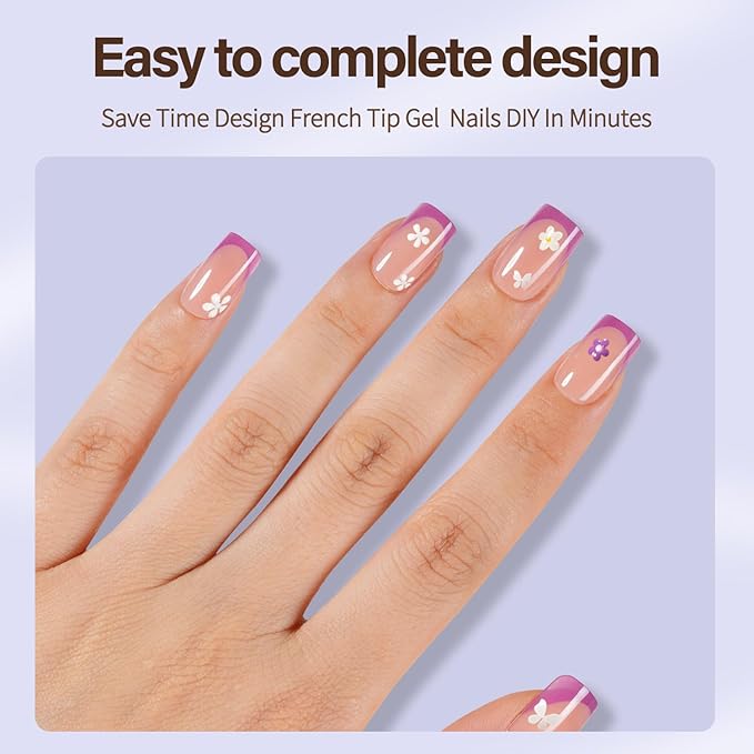 Misssix XBASICTIPS Purple French Tip Press On Nails, 150Pcs French Gel Nail Tips Short Square, Soft Gel Pre-shaped No Need to File 3 in 1 Tips, Fake Nails for Nail Art DIY Extension Designs 15 Sizes