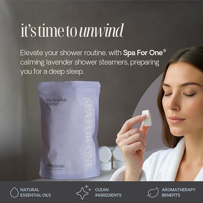 - BRING THE SPA HOME: Place one steamer on the shower floor and let the scent of lavender fill the room, transforming your shower into a serene self-care ritual. Perfect for natural stress relief, or as a thoughtful Christmas gift for Mom, teacher appreciation, or a self-care birthday present.