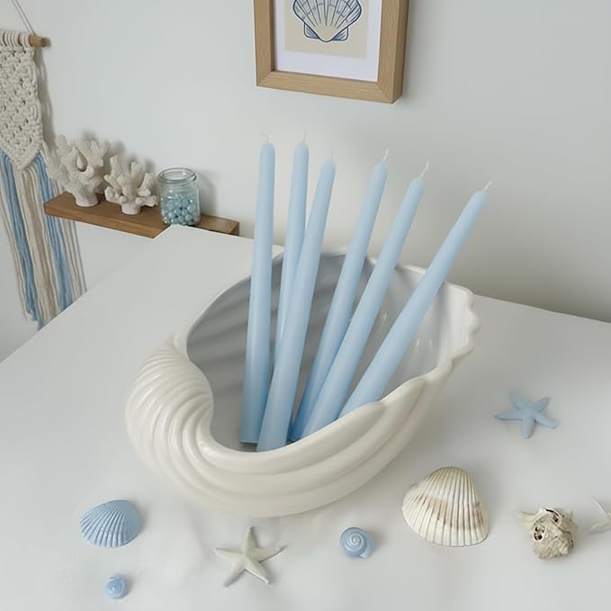 6 PK 10" Classic Taper Candles, Sky Blue, 7-8 Hours Long Burning, Unscented Tall Candlesticks