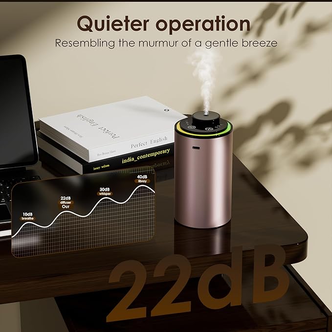 - Quiet Motor Operation: Our Essential Oils Diffusers for Home use a carbon brush motor with a unique, professional low-noise design. Operating at less than 30 dB, it is quieter than most appliances. The Diffusers for Essential Oils can quietly release the aroma of essential oils in any environment without disturbing you. It is suitable for offices, bedrooms, living rooms, and even bathrooms.
