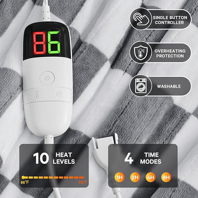 - GRAY GIFTS WITH A TWIST: The heated blanket throw elevate your space with the light gray checkered pattern, blending rustic charm with modern minimalism. The 50x60 size offers enough coverage for lounging moments. Its cozy warmth provides a comforting touch during chilly seasons, ensuring the home feels like a true haven. This checkered blanket is also suitable for the living room as a decor or as a warming gifts for birthday, Christmas, or housewarming.