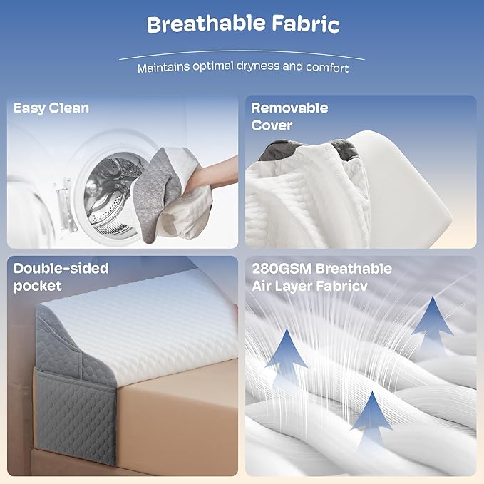 - ๐ ๐๐จ๐๐ค๐๐ญ๐ฌ ๐๐ง ๐๐จ๐ญ๐ก ๐๐ข๐๐๐ฌ: The wedge headboard pillow specially designed oversized side pockets can hold books or tablets for bedtime reading.You can also store your phone, remote control, glasses, or other small items, keeping your sleep environment tidy and organized