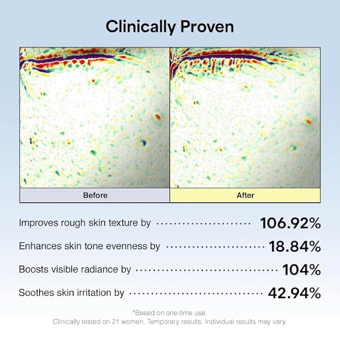 - Clinically Proven Multi-Benefit Results : In a 21-person clinical study, participants experienced significant visible improvements after use: smoother skin texture (+106.9%), more even skin tone (+18.8%), brighter radiance (+104%), and reduced irritation (+42.9%). Results may vary but demonstrate the powerful synergy of LHA + α-Lipoic Acid.