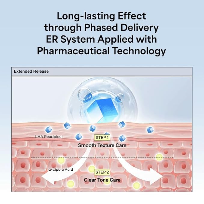 - Next-Generation 5th-Gen LHA for Gentle Yet Powerful Exfoliation : Formulated with advanced LHA Pearlpicul (5,000 ppm, patented technology), this serum delivers precise micro-exfoliation that gently removes dead skin cells without irritation. The unique crystalline structure allows both physical and chemical peeling, improving rough skin texture by +106.9% in clinical studies.