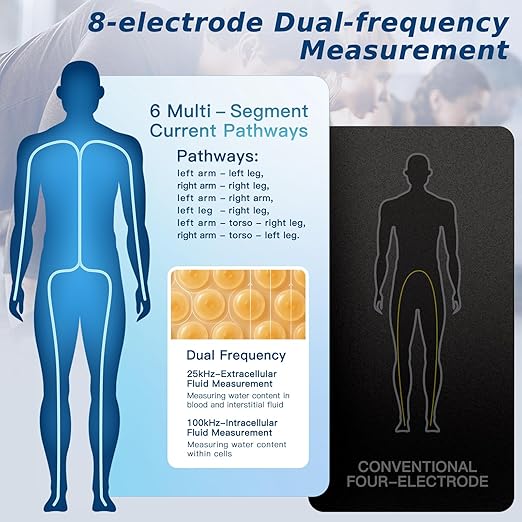 - App Setup Required: Utilize 8 advanced electrodes for clinical-grade analysis of body fat, muscle mass, BMI, bone mass, water percentage, and 22+ metrics (Requires free app setup with height/sex/age for full body composition insights. Without setup, functions as accurate weight-only scale).