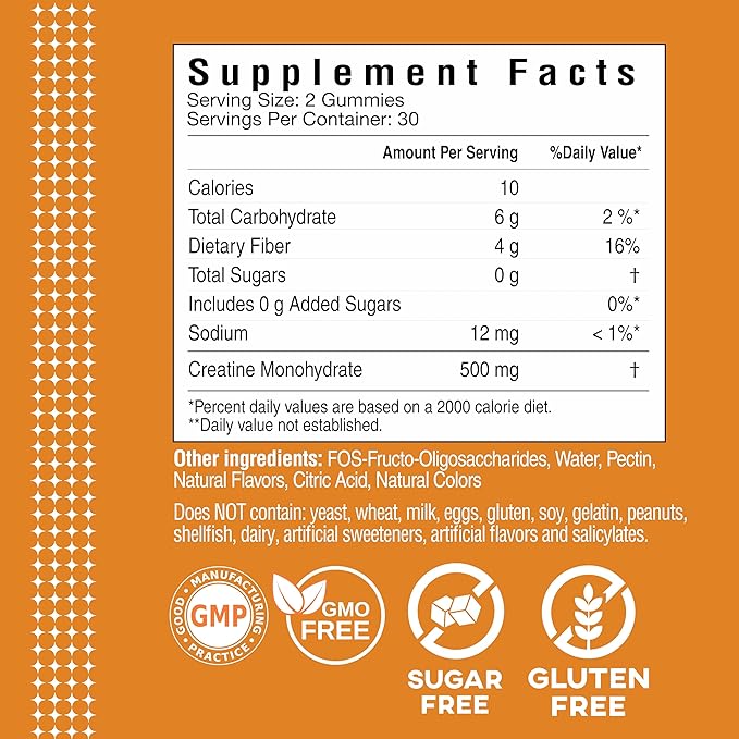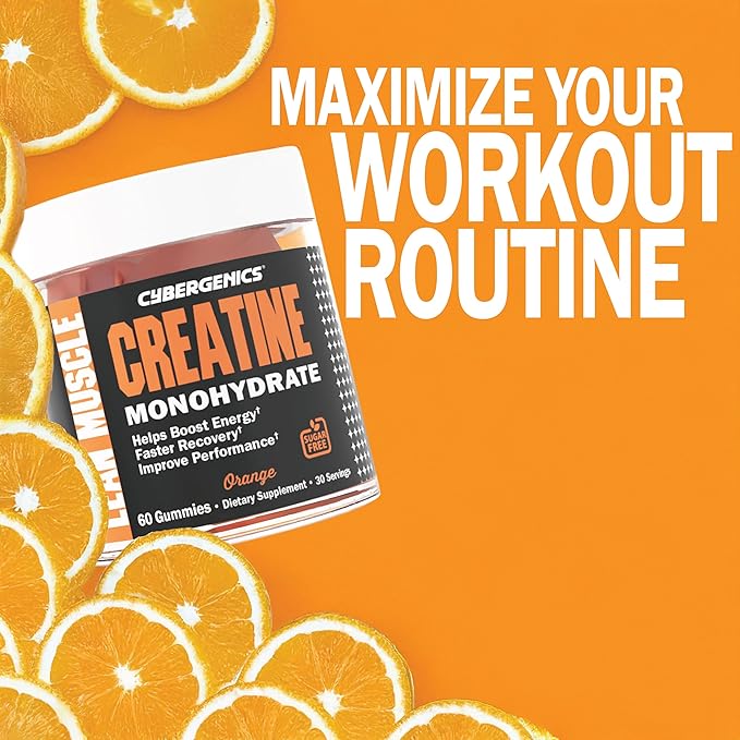 Creatine Monohydrate Gummies, Pure Creatine, Supports Muscle Recovery, Improve Performance and Strength, Gluten Free, 60 Servings, Orange Flavor