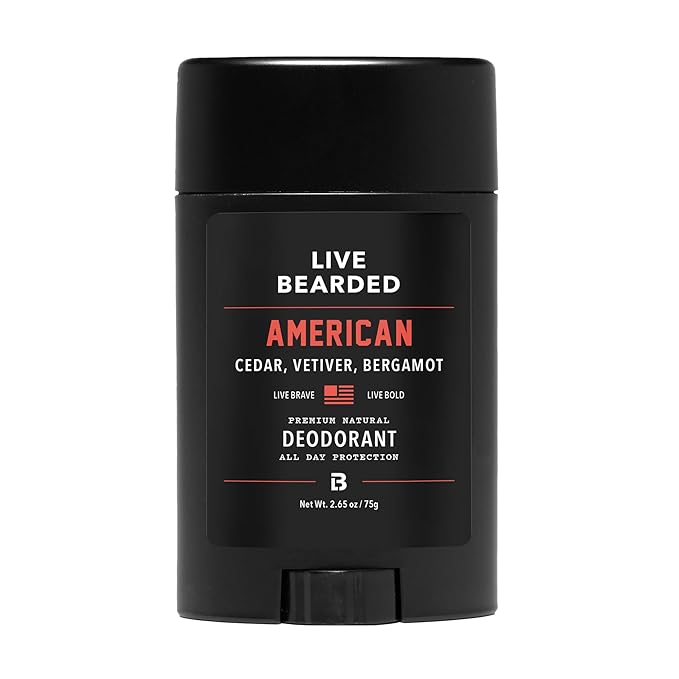 Live Bearded Men's Deodorant - Long Lasting, Aluminum Free, All Natural, Activated Charcoal Deodorant for Men, Travel Size - American, 1 Stick