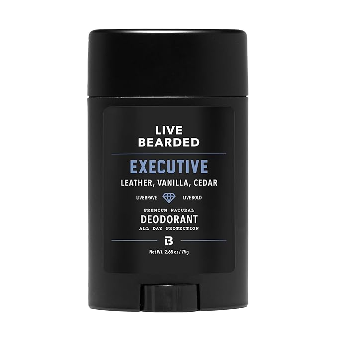 Live Bearded Men's Deodorant - Long Lasting, Aluminum Free, All Natural, Activated Charcoal Deodorant for Men, Travel Size - Executive, 1 Stick