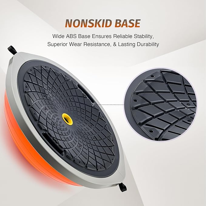 - Ready for Intense Sets: Our textured PVC balance ball is supported by a 24.4 in. ABS base with nonskid TPR matting. Confidently perform explosive movements knowing it supports up to 660 lb. and grips the floor firmly