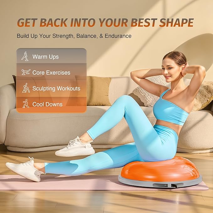 - Yoga Ball Included: This set includes not just the half dome balance ball, but also a separate 25.6 in. inflatable yoga ball for more workout options. Alternate between dynamic half-ball exercises one day and restorative full-ball stretches the next