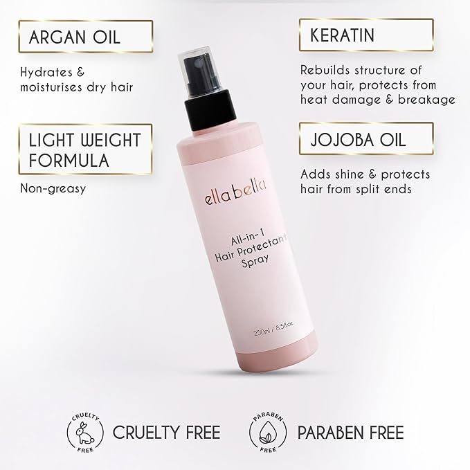 ELLA BELLA® 6-in-1 Hot Air Styler Pink & Heat Protectant Spray • Powerful Hair Dryer Set for Fast Curling, Volumizing, Straightening • Includes Travel Case • UV Shield & Nourishing Hair Care