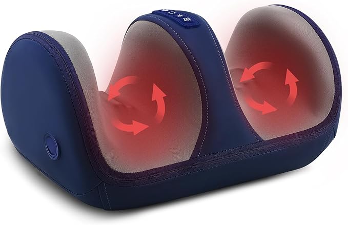 Shiatsu Foot Massager with Heat, Foot and Calf Massager for Circulation and Pain Relief, Plantar Fasciitis, Massage Feet/Arm/Calf/Ankle with Kneading Rolling, Gifts for Women & Men, Blue