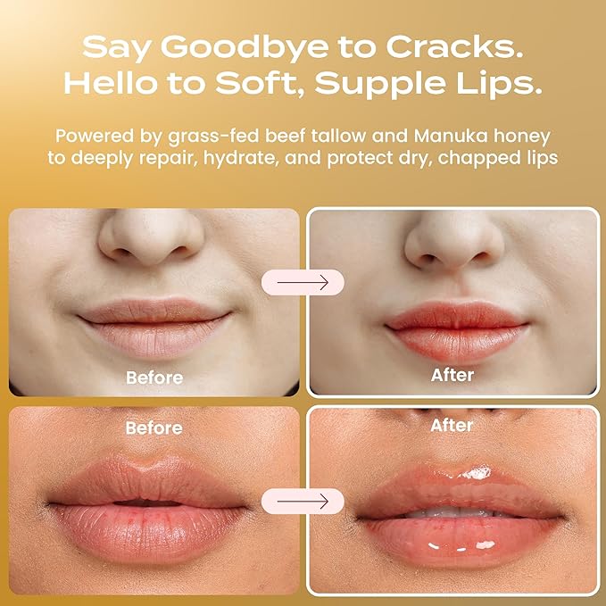 - Beef Tallow Moisturizer & Nourishment: Our beef tallow moisturizer locks in hydration and helps maintain soft, supple lips day and night.