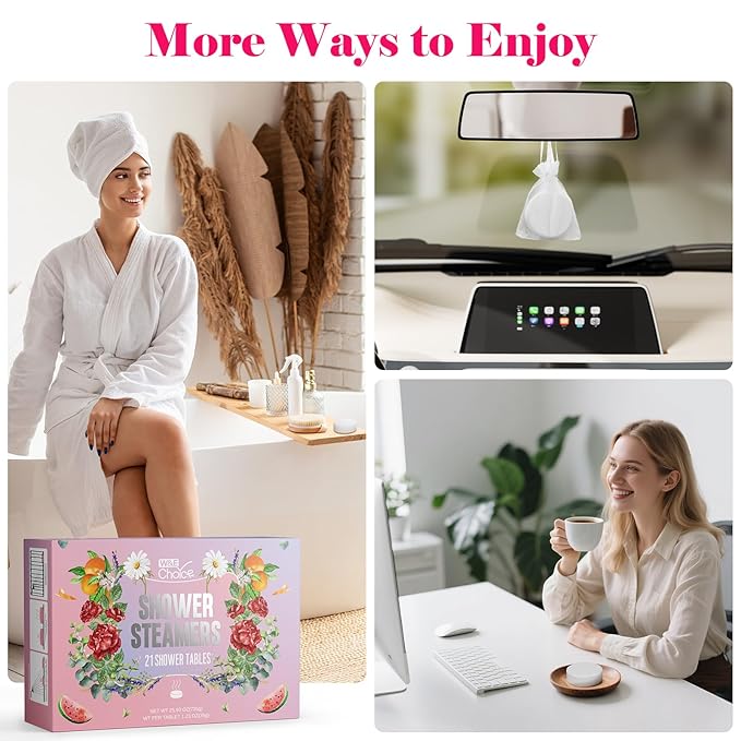 W&E Choice Shower Steamers Aromatherapy 21 Pack- Shower Bombs with Natural Essential Oils for Daily Relaxation & Stress Relief, Birthday Gifts for Women & Men, Mom, Teen