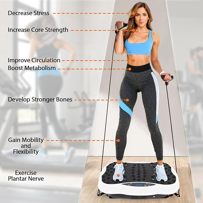 - 【Knee-Friendly Design, Safe for All Ages】Designed to be gentle on the knees and joints, the vibration plate stimulates muscles, boosts blood circulation, and speeds up metabolism, making it perfect for older adults to maintain or improve their health without risk of injury
