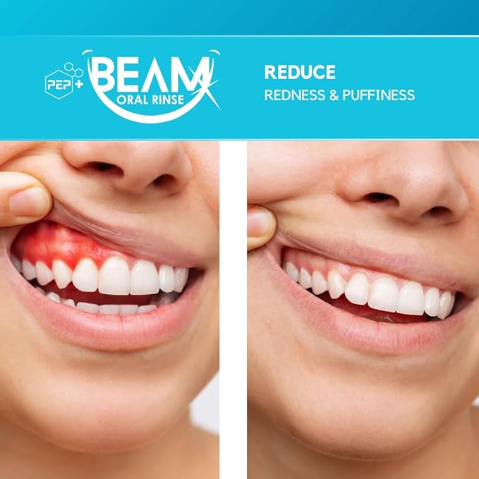 - Powered by Peptides for Oral Support – Featuring patented peptides AGRP and DBP, PEP+ BEAM Oral Rinse helps soothe redness and puffiness in gums and oral mucosa. Combined with xylitol and wild mint oil, it helps rejuvenate and refresh your mouth for a healthier-feeling smile every day.