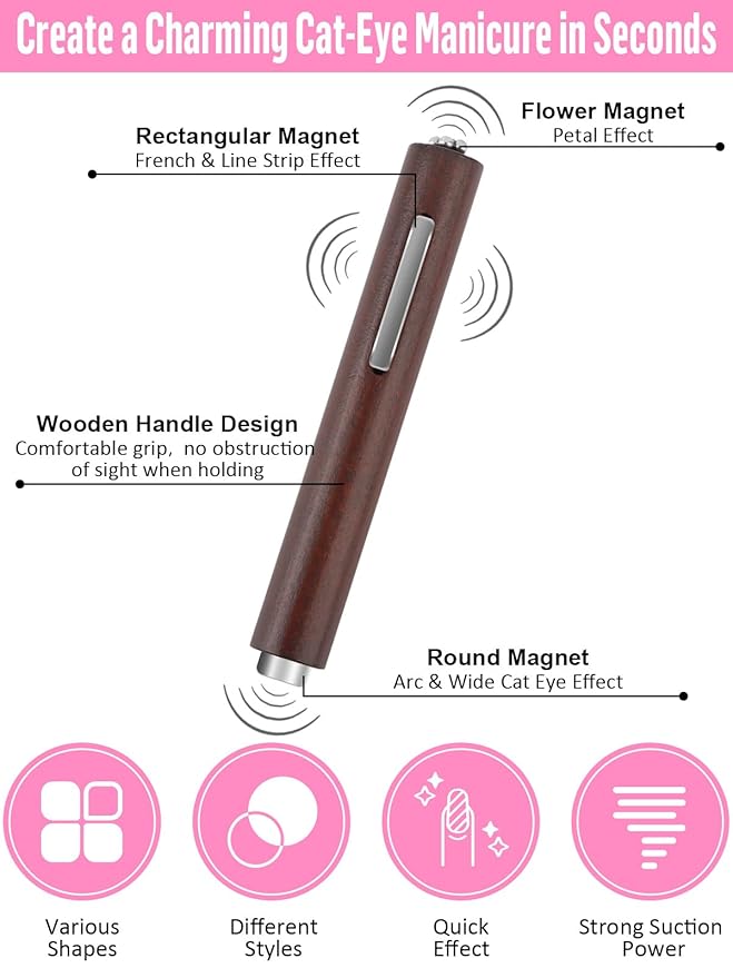- Easy to Apply: Simply apply magnetic cat eye polish, hover the cateye magnet for nails over your nail for 15-30 seconds, then cure under UV/LED light. No smudging! These magnets for nails make DIY salon-quality nail magnet designs effortless.