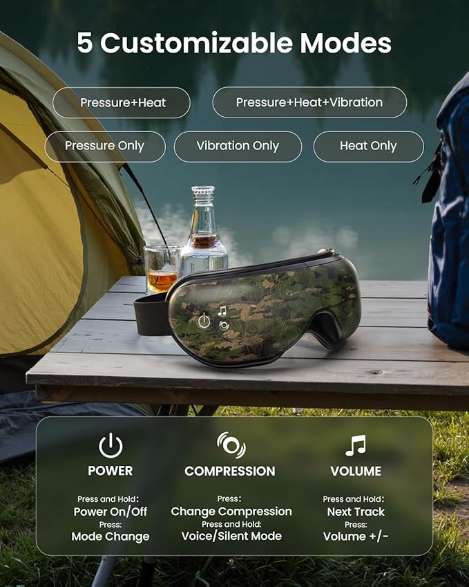 - Personalized massage: Experience 5 unique massage modes combined with soothing music to effectively reduce stress, and enhance sleep quality.This eye massager can make people feel rejuvenated after long working hours.