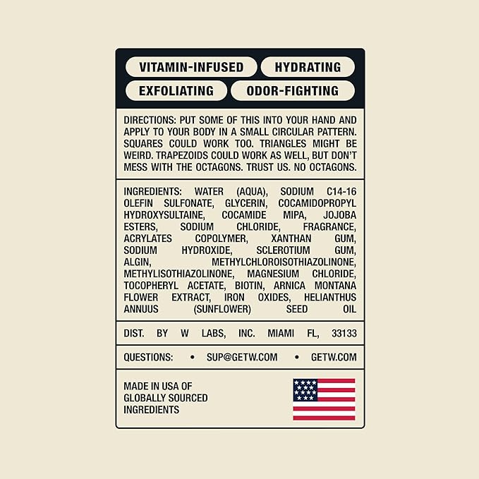 W By Jake Paul Exfoliating Body Wash for Men, Vitamin-Infused, Hydrating Shower Gel, Wave Breaker, 18 fl oz