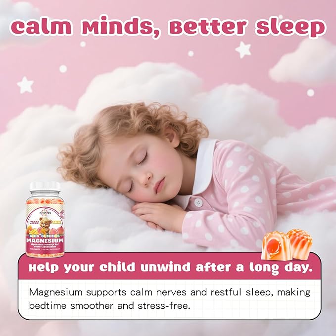 - Liposomal Magnesium for Better Calm & Absorption: Our magnesium glycinate for kids gummies use advanced liposomal encapsulation to shield magnesium through digestion and deliver up to 5x better absorption than regular forms. This means faster, more effective calming and sleep support. The innovative dual-layer gummy design adds fun; it’s not only more bioavailable but also more tasty for kids—no pills, no hassle