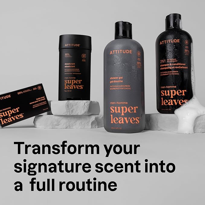 ATTITUDE Shower Gel Body Wash for Men, 98% Natural Origin Ingredients, Paraben & Phthalate Free, EWG Verified, Cleanses Without Drying, Patchouli & Bourbon, 14 Fl Oz