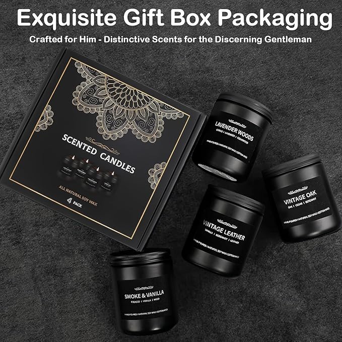 - Gifts for Men: With our premium hand-poured scented candles crafted for the discerning gentleman in your life, this thoughtfully designed scented candle gift box is sure to impress the important man in your life. Whether it's for a man's birthday, holidays, anniversary Day, graduation gift, Christmas, Father's Day and other important holidays provide a great gift idea.