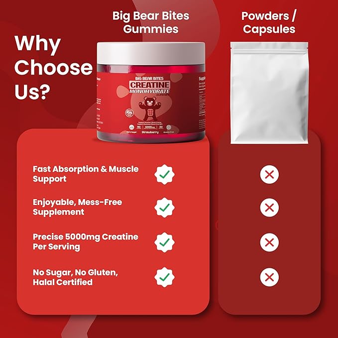- ๐๐ผ๐ป๐๐ฒ๐ป๐ถ๐ฒ๐ป๐ ๐๐ฎ๐ถ๐น๐ ๐๐ผ๐๐ฒ ๐๐ถ๐๐ต ๐๐ ๐๐๐บ๐บ๐ถ๐ฒ๐ ๐ฝ๐ฒ๐ฟ ๐๐ฎ๐ด: Each bag of Big Bear Bites creatine monohydrate gummies contains 90 delicious pre workout gummies, providing a full 30 servings. Simply take 3 gummies a day to meet your daily creatine needs, making it easy to incorporate into your routine without the need for measuring creatine monohydrate powders or swallowing creatine pills.