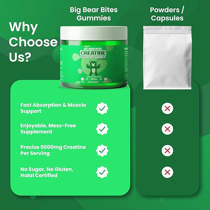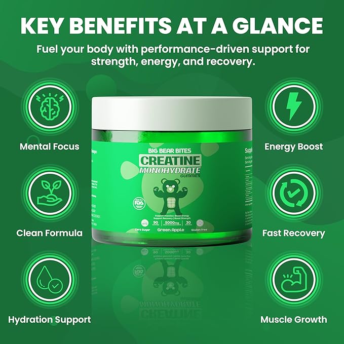 - ๐๐ผ๐ป๐๐ฒ๐ป๐ถ๐ฒ๐ป๐ ๐๐ฎ๐ถ๐น๐ ๐๐ผ๐๐ฒ ๐๐ถ๐๐ต ๐๐ ๐๐๐บ๐บ๐ถ๐ฒ๐ ๐ฝ๐ฒ๐ฟ ๐๐ฎ๐ด: Each bag of Big Bear Bites creatine monohydrate gummies contains 90 delicious pre workout gummies, providing a full 30 servings. Simply take 3 gummies a day to meet your daily creatine needs, making it easy to incorporate into your routine without the need for measuring creatine monohydrate powders or swallowing creatine pills.