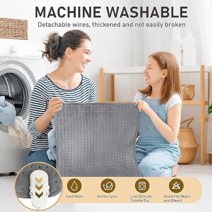- 10 Heating Levels & 3 Timing Options:Discover the perfect warmth for your body with 10 precise heat levels (86°F-150°F). Designed for complete safety and longevity, the certified controller automatically prevents overheating. Enjoy uninterrupted relaxation by choosing a timer (45 min, 90 min, 2 hours, or 2 hours) that suits your session—allowing you to save energy and drift off safely. The easy-read backlit screen is ideal for nighttime use, and the 7.2-foot long cord gives you the freedom to get comfortable anywhere at home