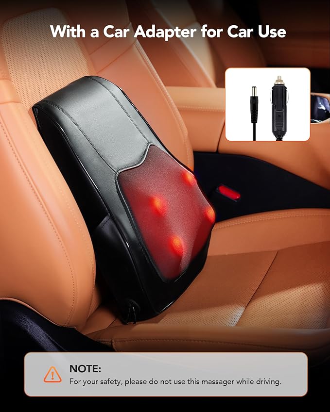 - Dual Power Adapters for Anywhere Use: Our back massager has an AC adapter (for home/office) and a car adapter (perfect for road trips). Never miss a massage session, whether at your desk or on the go.