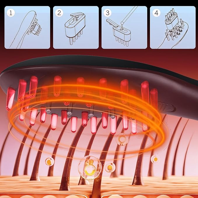 - Hair oil applicator is equipped with 28 soft silicone massage heads, 5 liquid-guiding roller balls, and a removable hair oil dispenser bottle. Delivers gentle scalp massage, which can accurately deliver the liquid or essential oil to the root of the hair, spreads evenly, vibrating and massaging, it doesn't get oil all over your hair, keeping the whole use process clean.