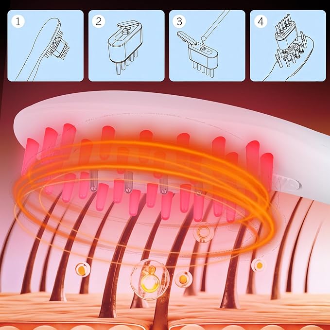- Hair oil applicator is equipped with 28 soft silicone massage heads, 5 liquid-guiding roller balls, and a removable hair oil dispenser bottle. Delivers gentle scalp massage, which can accurately deliver the liquid or essential oil to the root of the hair, spreads evenly, vibrating and massaging, it doesn't get oil all over your hair, keeping the whole use process clean.