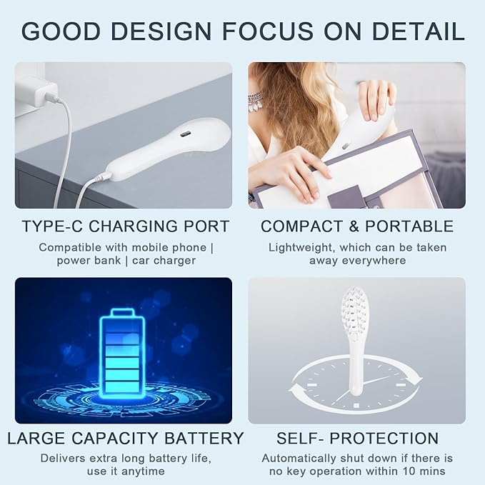- This handheld head hair scalp massager is equipped with a type-c charging cable, which can be fully charged in three hour. Can last for five days, worry-free travel. Ergonomic and compact design, easy to grab firmly and not easy to fall, Waterproof IPX5 level, easy to disassemble, direct cleaning.