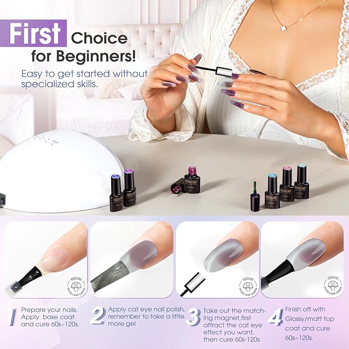 - THE IDEAL GIFT: ROSALIND Gel Polish Set is the ideal choice for any celebration—birthdays, holidays, anniversaries, or just because. Its timeless krystal cateye shades inspire endless, beautiful nail art. Give the gift of stunning, salon-worthy nails