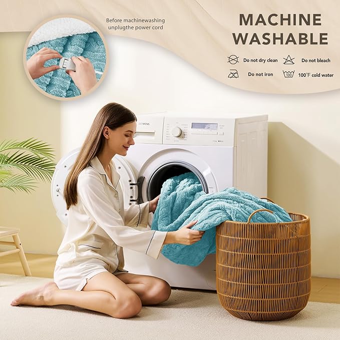 - ★Machine Washable : The controller cord is detachable. Please take off the controller cord before washing, then toss the blanket into the washing machine on a gentle cycle. And for drying, to keep the electric heated blanket twin being its best, we recommend air-drying or low-temperature drying, and do not plug in until it's completely dry.