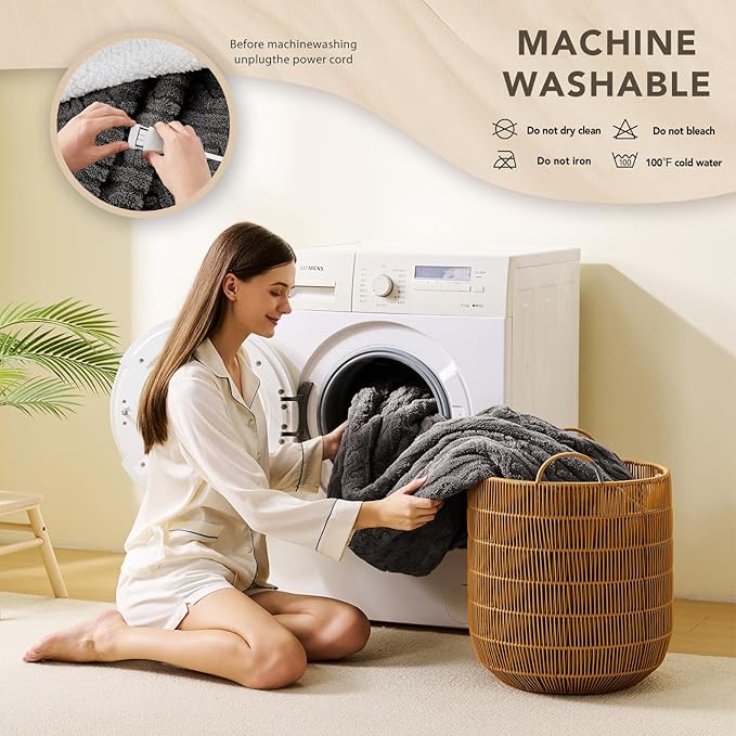 - ★Machine Washable : The controller cord is detachable. Please take off the controller cord before washing, then toss the blanket into the washing machine on a gentle cycle. And for drying, to keep the electric heated blanket twin being its best, we recommend air-drying or low-temperature drying, and do not plug in until it's completely dry.