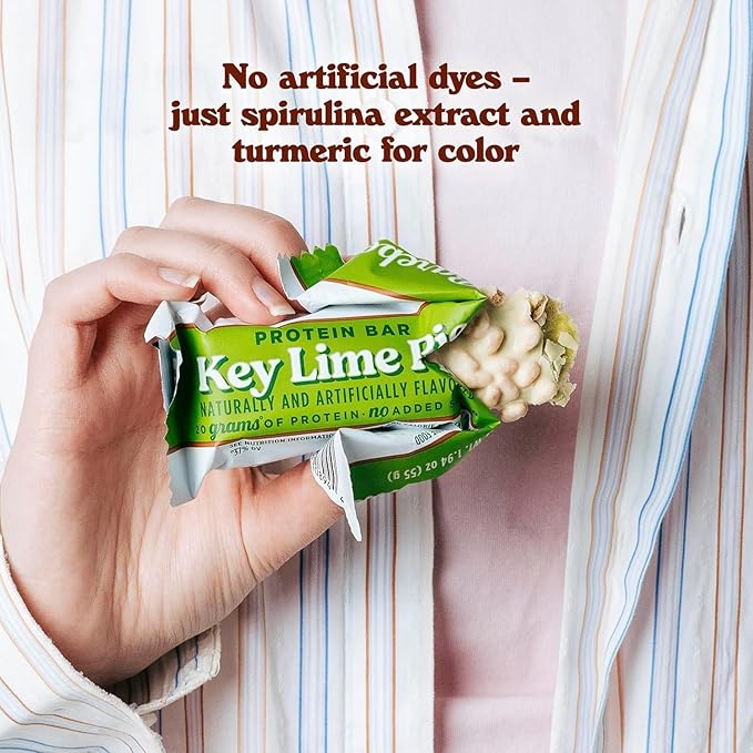 - BAREBELLS KEY LIME PIE PROTEIN BAR - 24 individual yummy Barebells protein bars! Barebells Key Lime Pie Protein Bar delivers 20g of protein in a soft, pie-inspired dough with a creamy lime filling, wrapped in smooth white chocolate and sprinkled with crispy crunch. Sour, sweet, and satisfyingly delicious - no added sugar, just pure convenience.