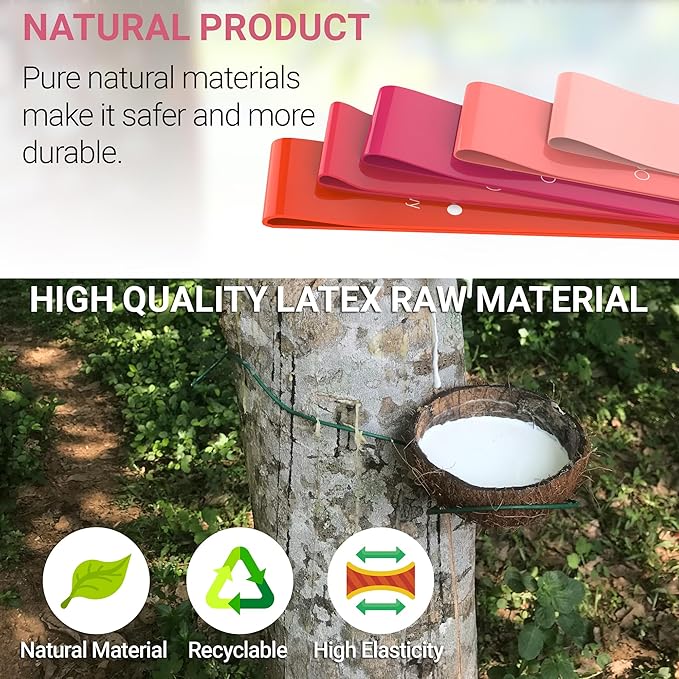 - PREMIUM NATURAL LATEX: Made from 100% natural latex, these exercise bands are strong, elastic, and long-lasting. The material of these workout bands ensures smooth resistance, keeps its shape even after daily use, and provides safe, effective training for every workout.