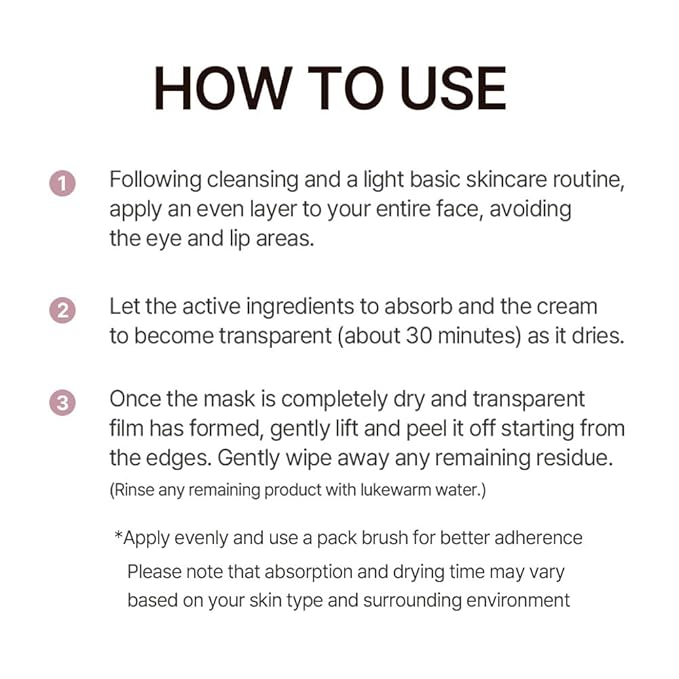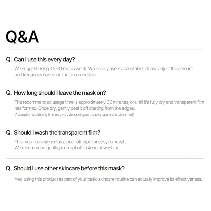 - Tight-Fitting Peel-Off Wrapping Mask : Designed to fit closely to the contours of your face, helping to create a smooth and radiant finish. Easily peels off after use, leaving skin feeling refreshed.