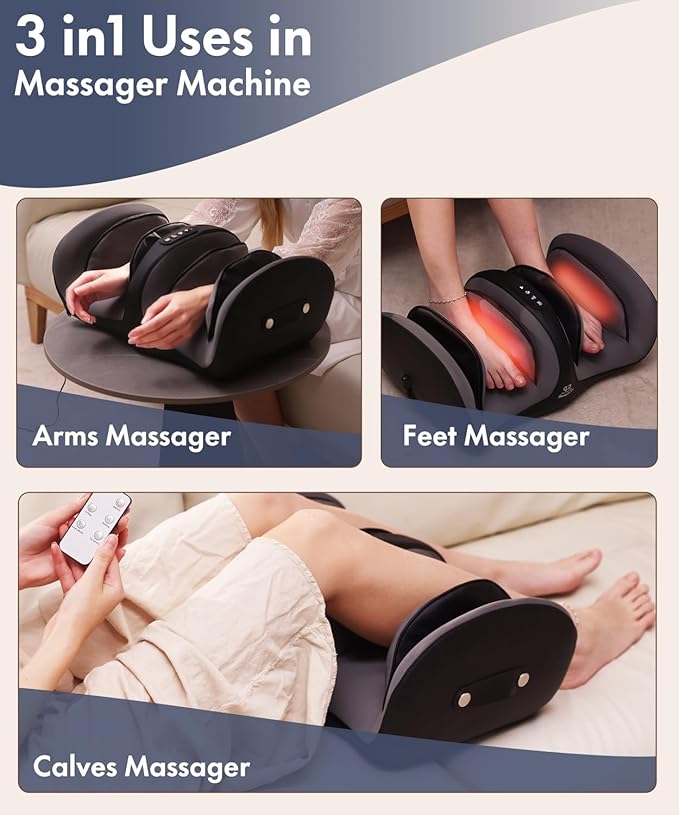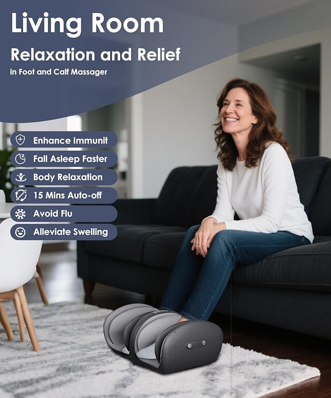 - [2 in 1 Uses Massage]:The foot and calf massager designed for foot health can massage the feet , calves, and leg in multiple scenarios, including the office, the living room sofa and the bedroom bed to help relaxation.