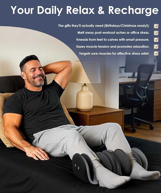 - [15 Mins Daily Relaxation]: The foot and leg massager is designed for your needs on their feet or seated all day, lets you enjoy at a home office relaxation after a long tense.